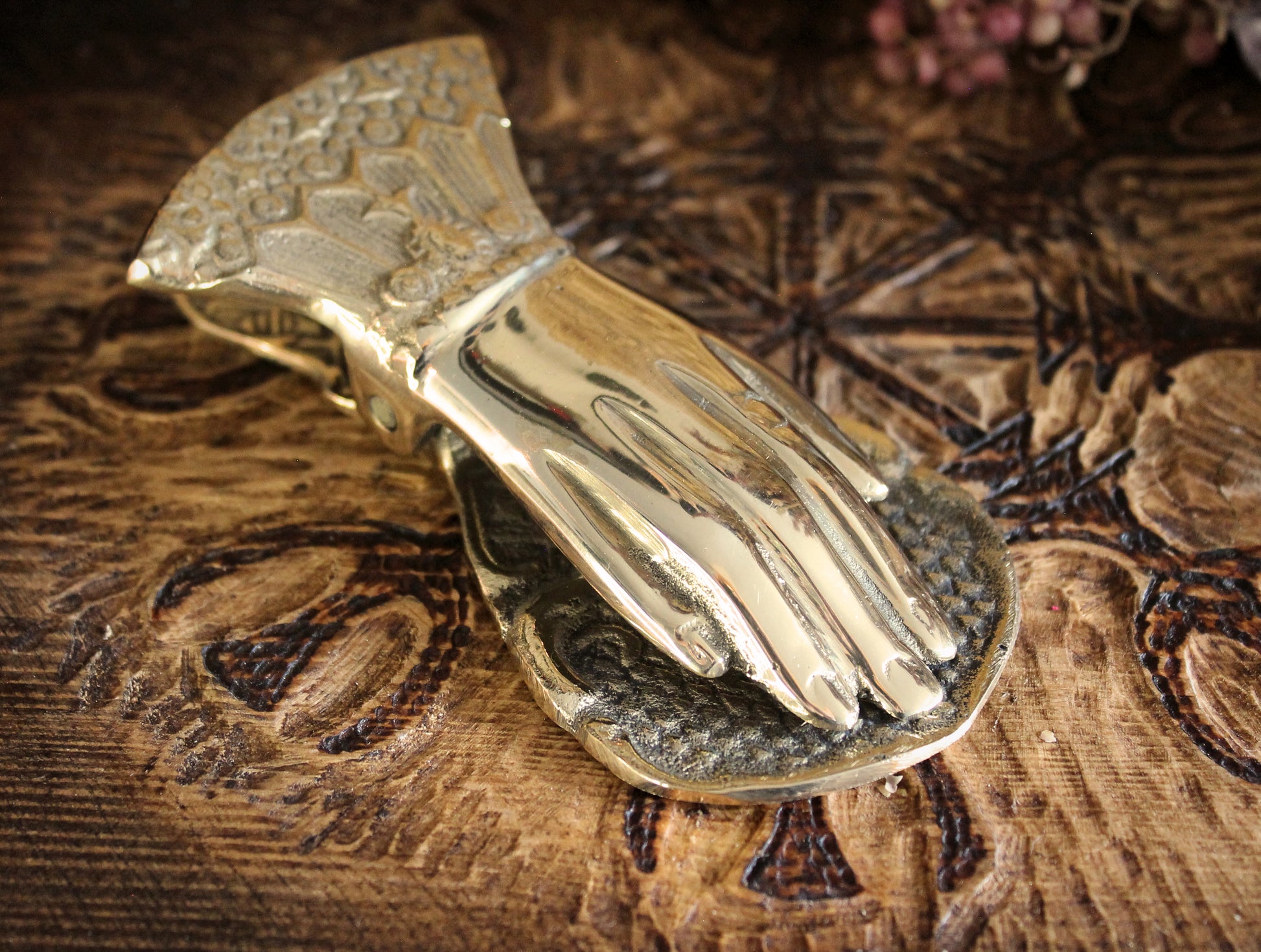This brass hand bookmark / page holder rests gently over your open book to hold pages in place while you read, journal, or study. Designed in the shape of an ornate hand, it brings a vintage gothic feel to your reading ritual — perfect for book lovers, witches, writers, and anyone who appreciates meaningful details.