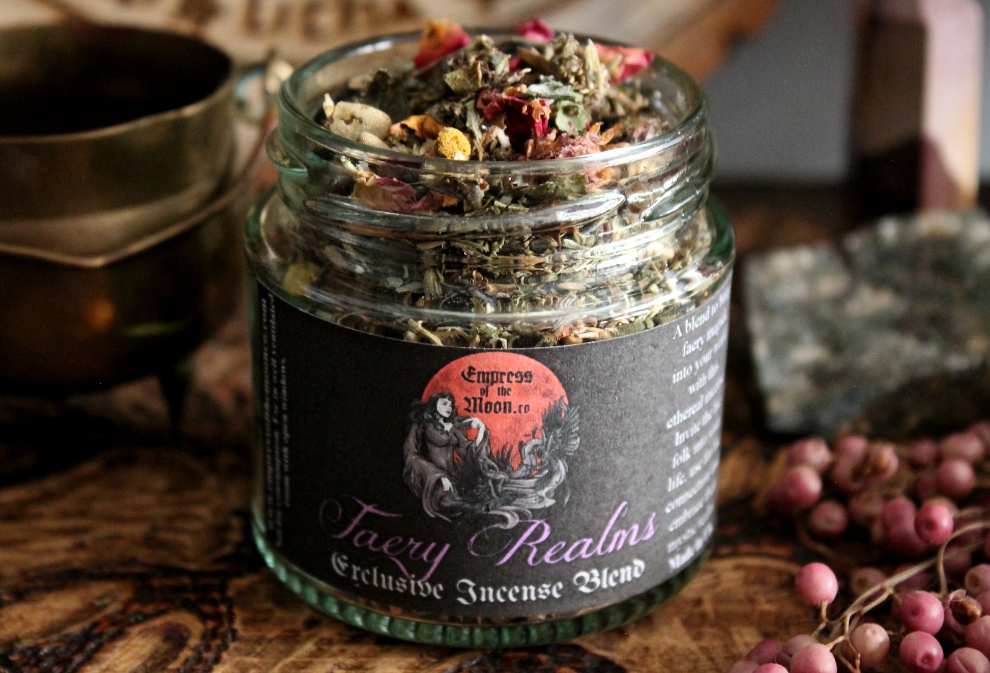 Faery Realms is a handcrafted loose incense blend designed to help you connect with the ethereal energies of the fae. Made with a harmonious mix of enchanted botanicals, this incense invites subtle, playful and deeply magical energies unto you rituals, meditations and offerings.
